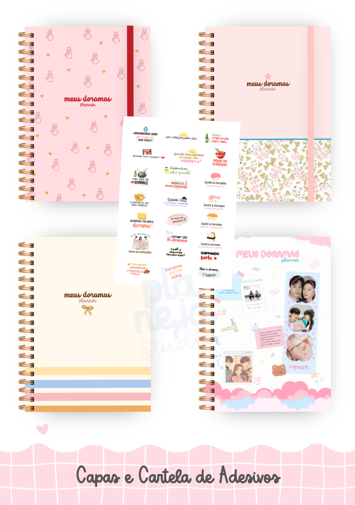 Depois do sucesso da versão digital, o Planner Meus Doramas ganhou uma adaptação completa para produção profissional — com todas as melhorias que as próprias dorameiras pediram.